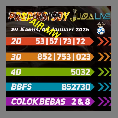 PREDIKSI SYAIR SDY merupakan situs penyedia kombinasi angka paling akurat yang sangat dibutuhkan oleh para pecinta togel sydney untuk mendapatkan Prediksi Sdy Hari Ini. Prediksi Sdy merupakan istilah kumpulan syair sdy dari berbagai sumber forum togel terpercaya yang memberikan kode syair sidney untuk menjadikan prediksi sydney hari ini. Anda bisa menggunakan salah satu angka jitu di atas secara lengkap atau dengan cara yang sama seperti yang disediakan di situs Prediksi Sdy sehingga Anda juga bisa mencocokkannya kembali secara acak dengan angka yang Anda miliki, sehingga bisa menjadi angka yang sangat kompetitif di pasar togel SDY untuk hari berikutnya. Karena Prediksi Sidney merupakan salah satu cara dalam permainan togel untuk bisa menebak angka agar mudah mendapatkan jackpot jutaan yang besar.