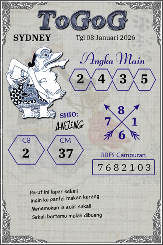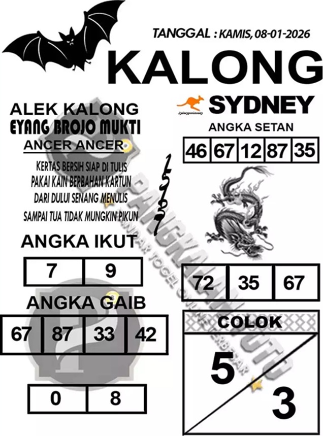 SYAIR PREDIKSI KELUARAN SYDNEY, 8-Jan-2026